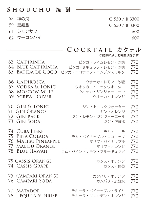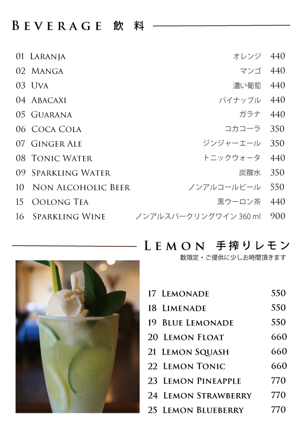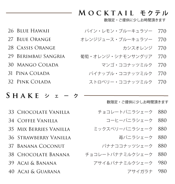 グループでお集まりの場合はピッチャやペットボトルなどでMOCKTAILやソフトドリンク等ご提供できますので、ご予約時ご相談ください。